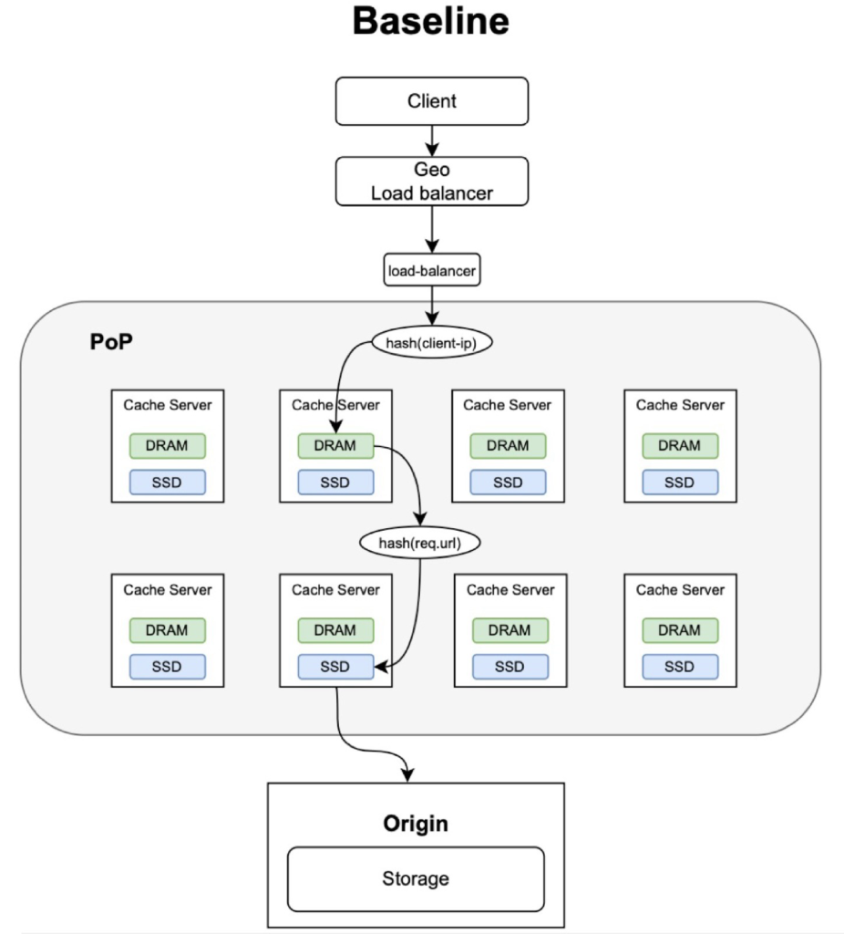 How requests map to caches also matters. Random load balancing distributes traffic evenly but loses locality. Hash-based balancing keeps similar URLs on the same cache, improving reuse. The right approach depends on request entropy and cache count per PoP.